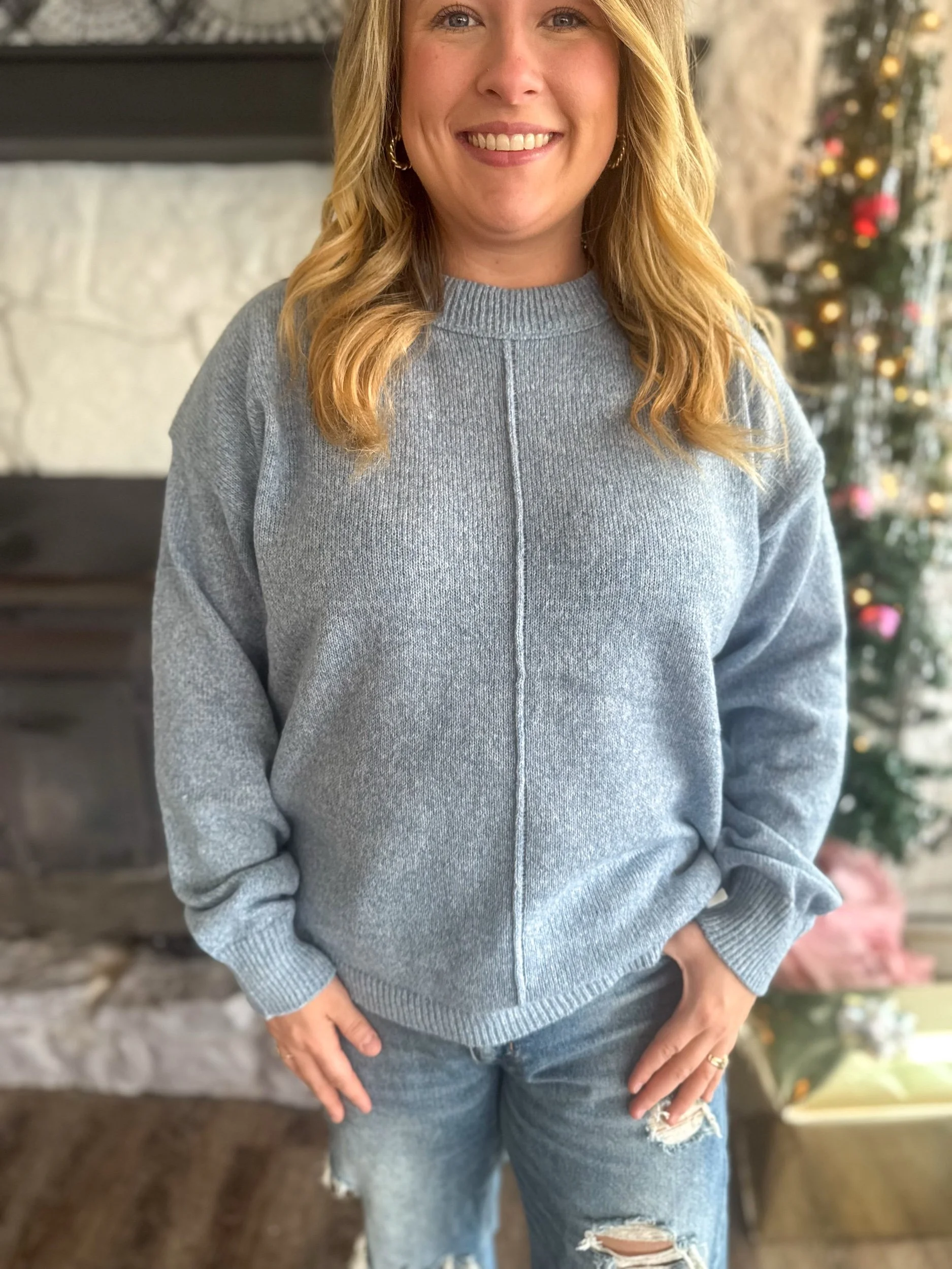 Ultra soft and stretchy sweater with crew neck, neck line and midline center detail.