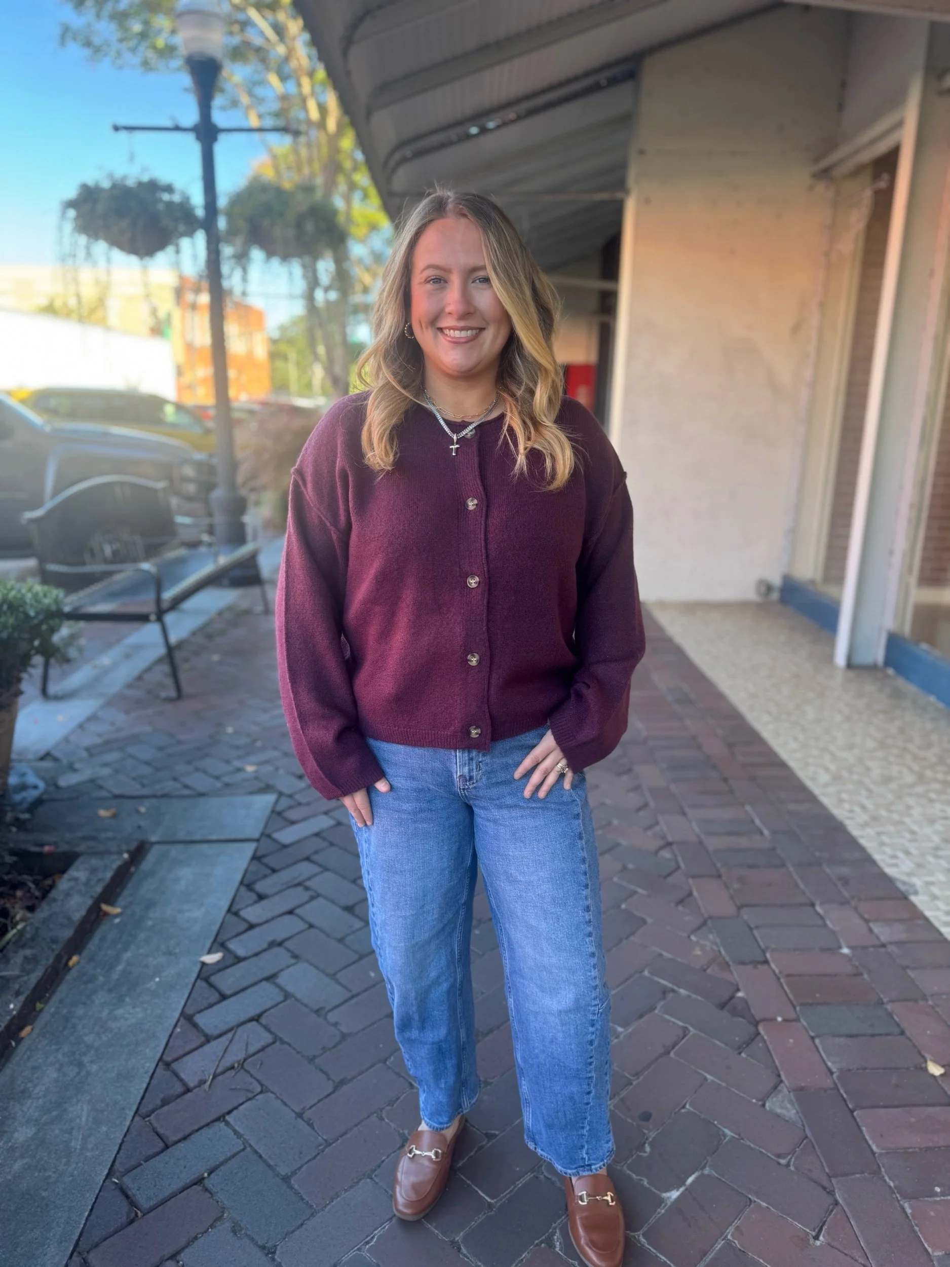 This classic cardigan sweater features a button down front- with a relaxed fit making it perfect for layering.
