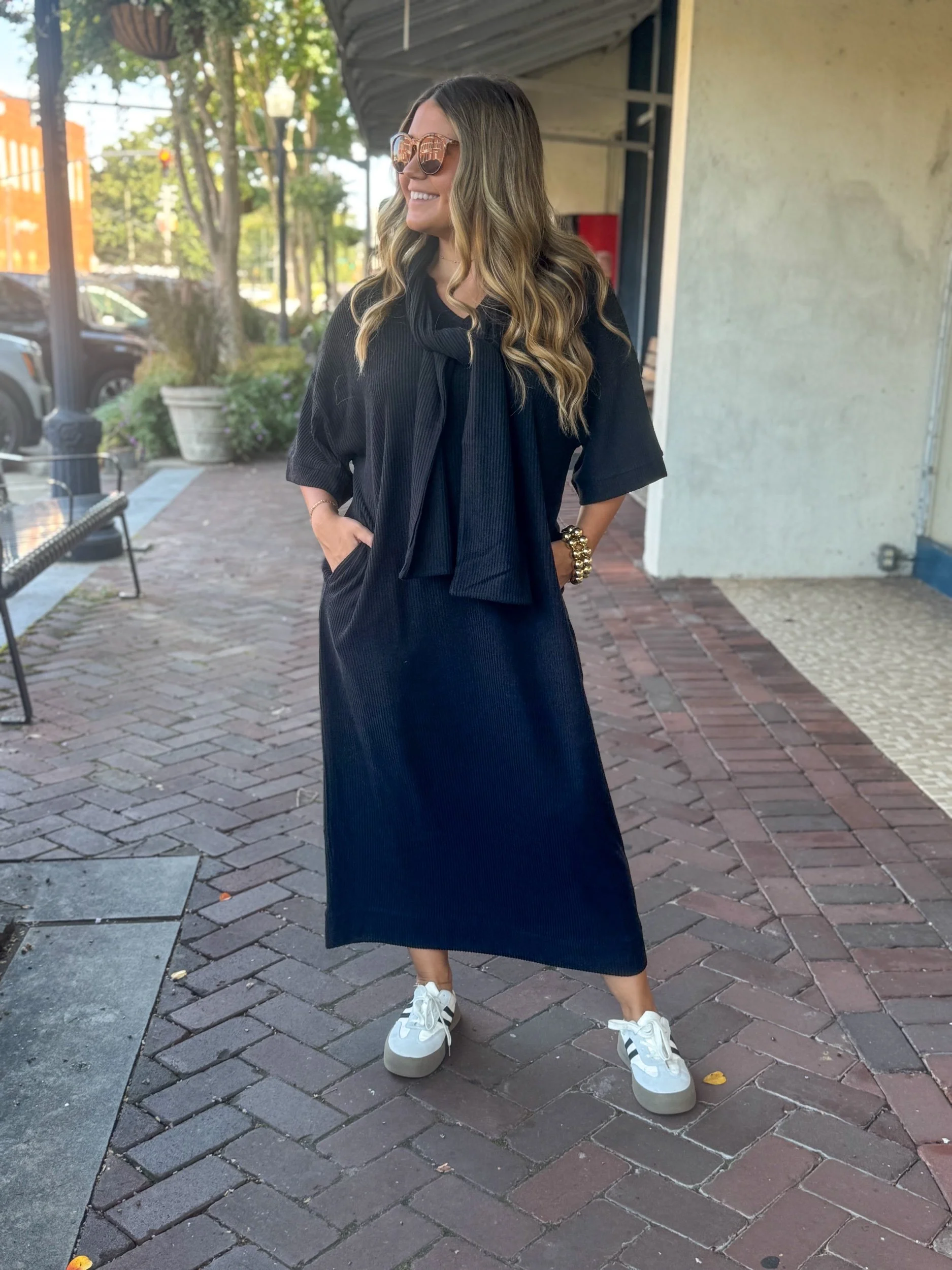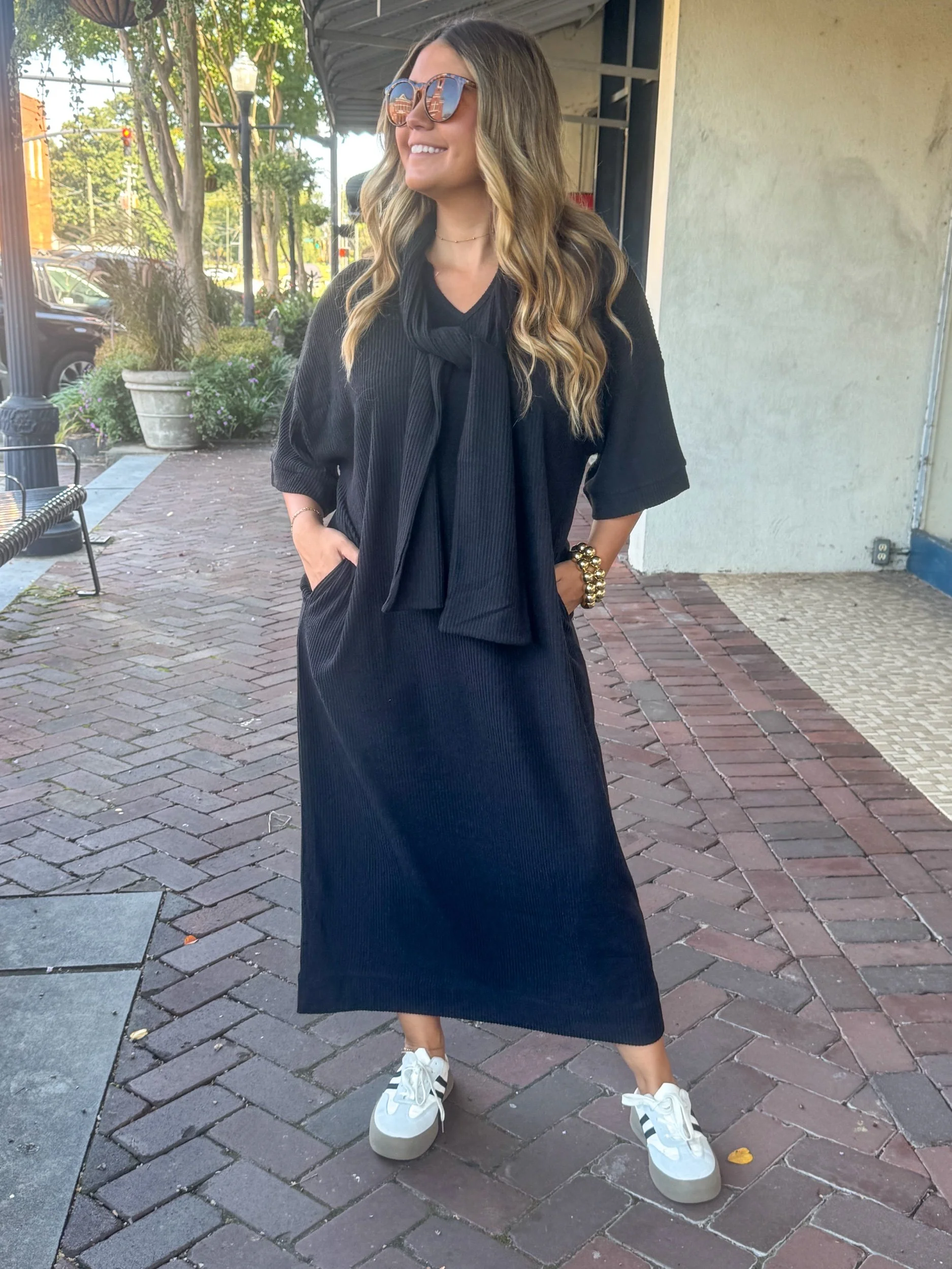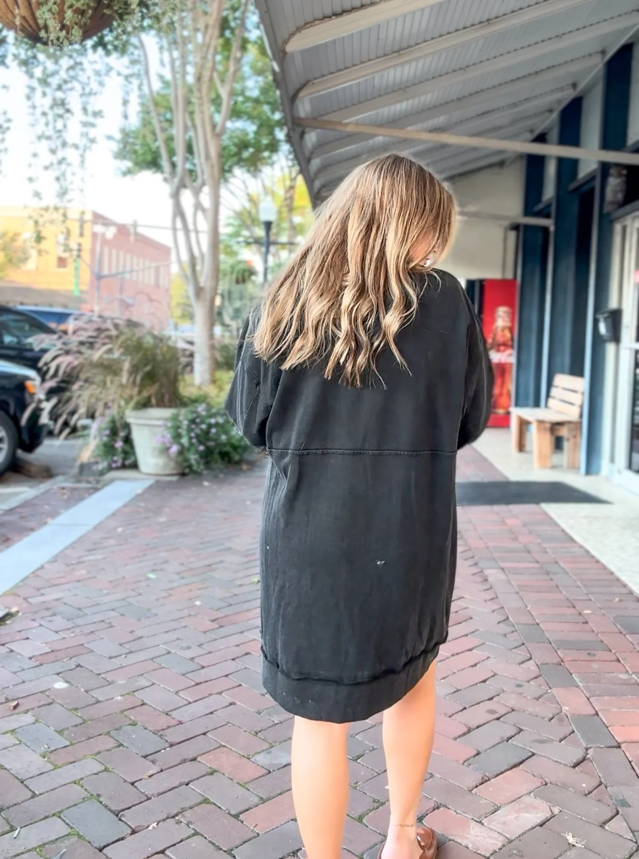 Light weight sweatshirt dress with leopard front tie detail and drop shoulder. Relaxed fit.