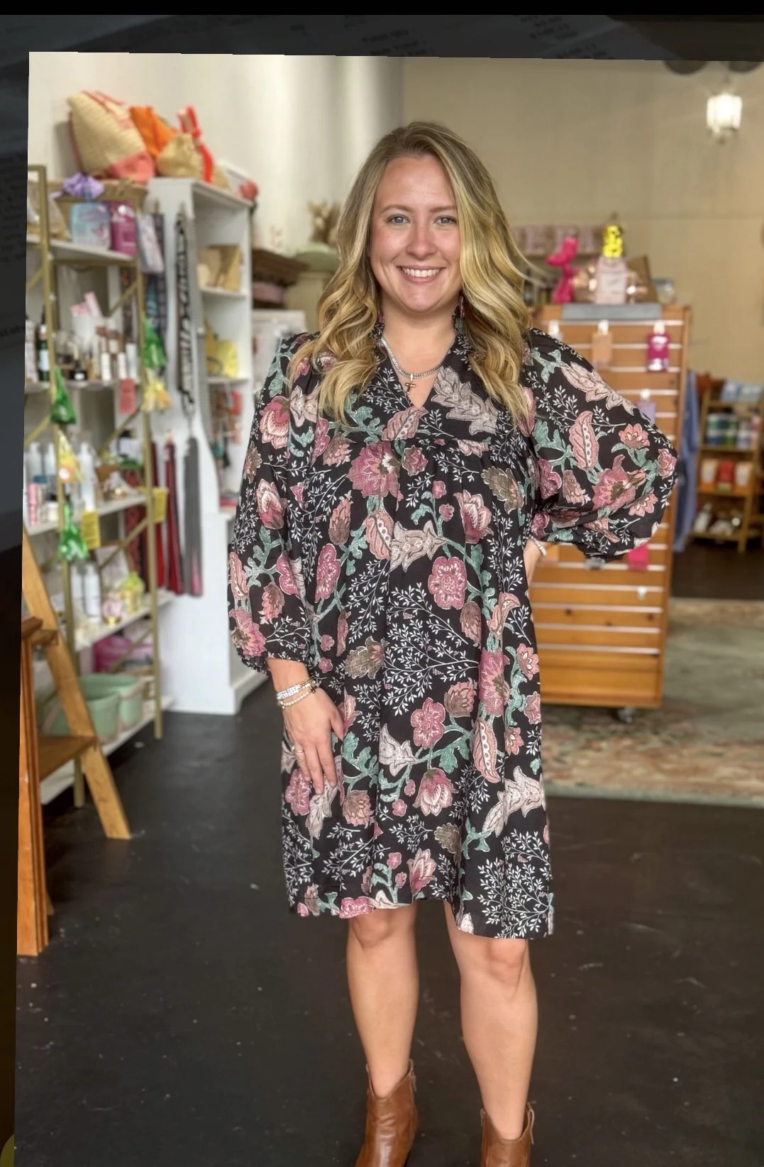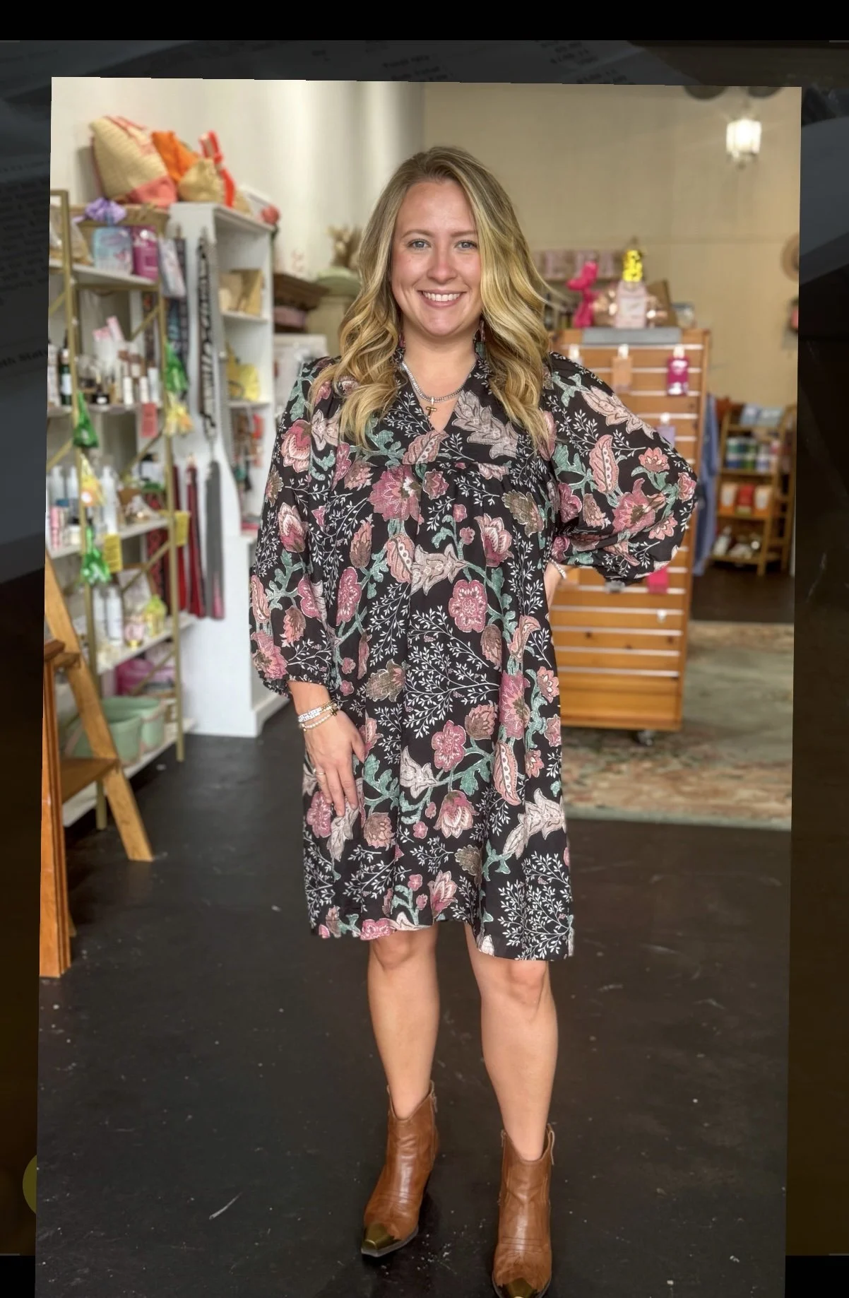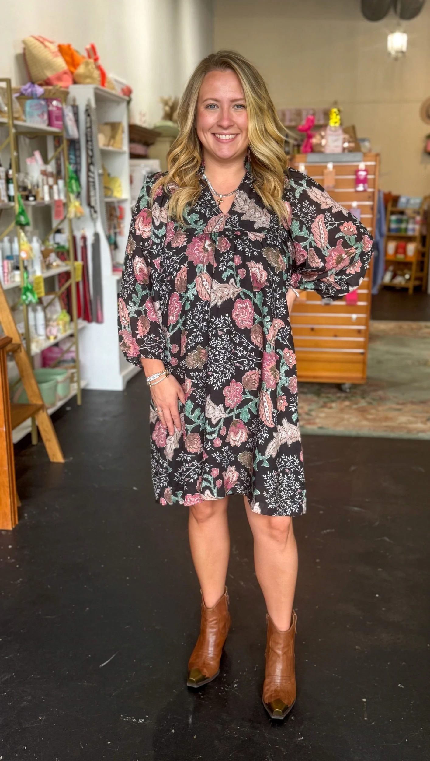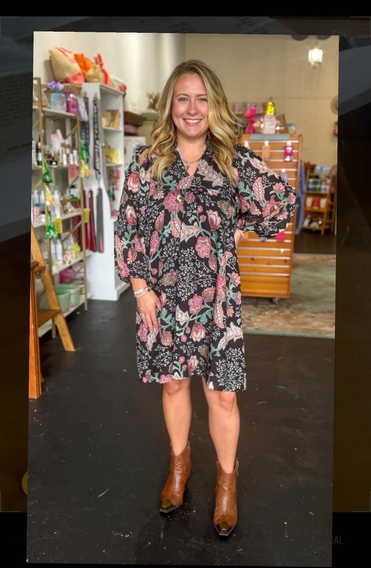 Light weight sweatshirt dress with leopard front tie detail and drop shoulder. Relaxed fit.