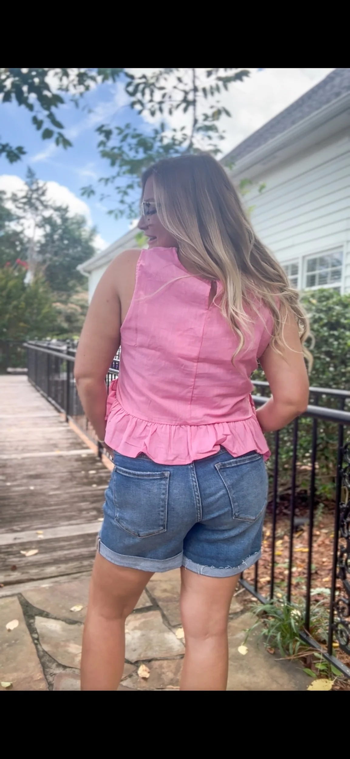 Collared bubble gum pink pullover with V neck and cuffed sleeve detail. Very soft and stretchy material.