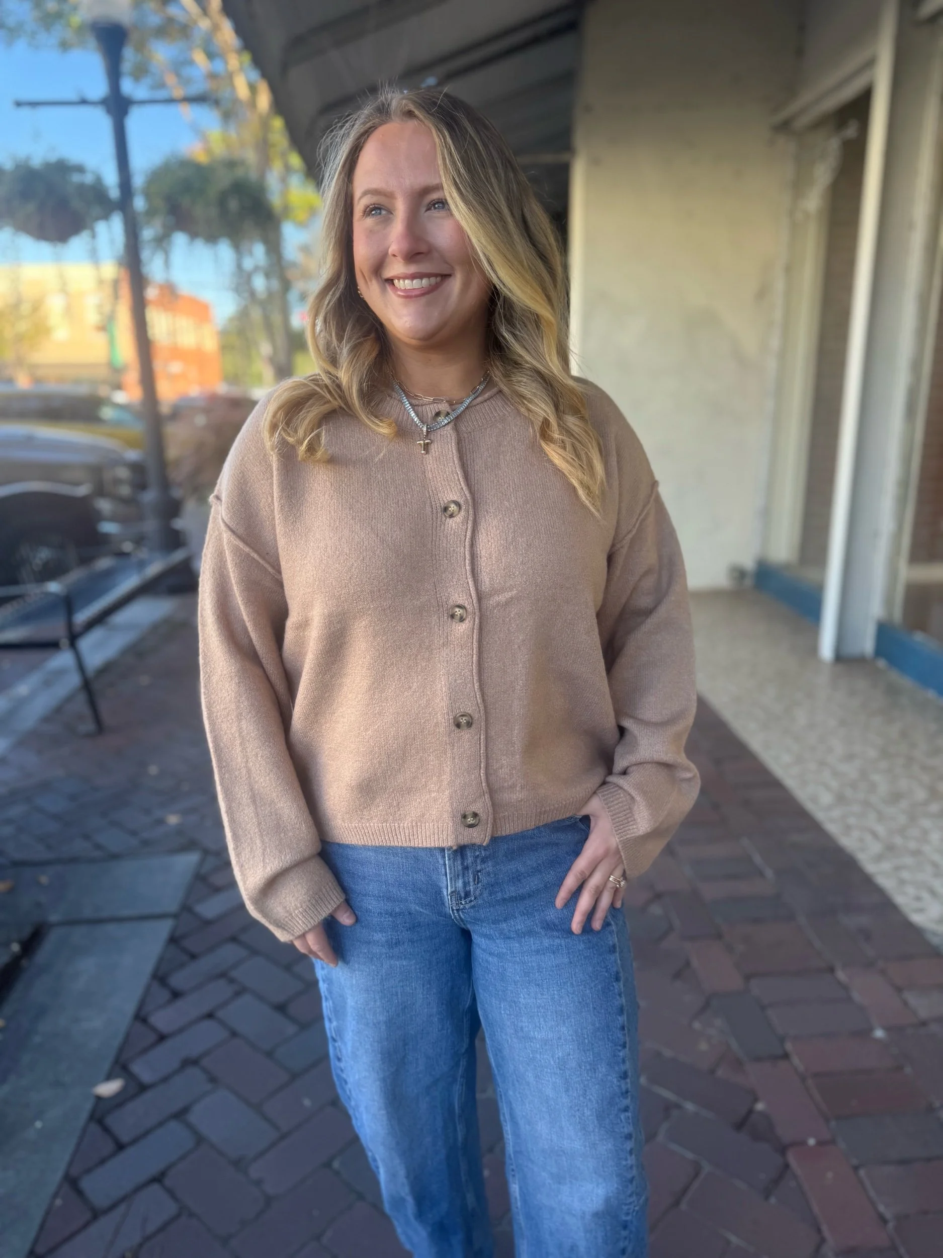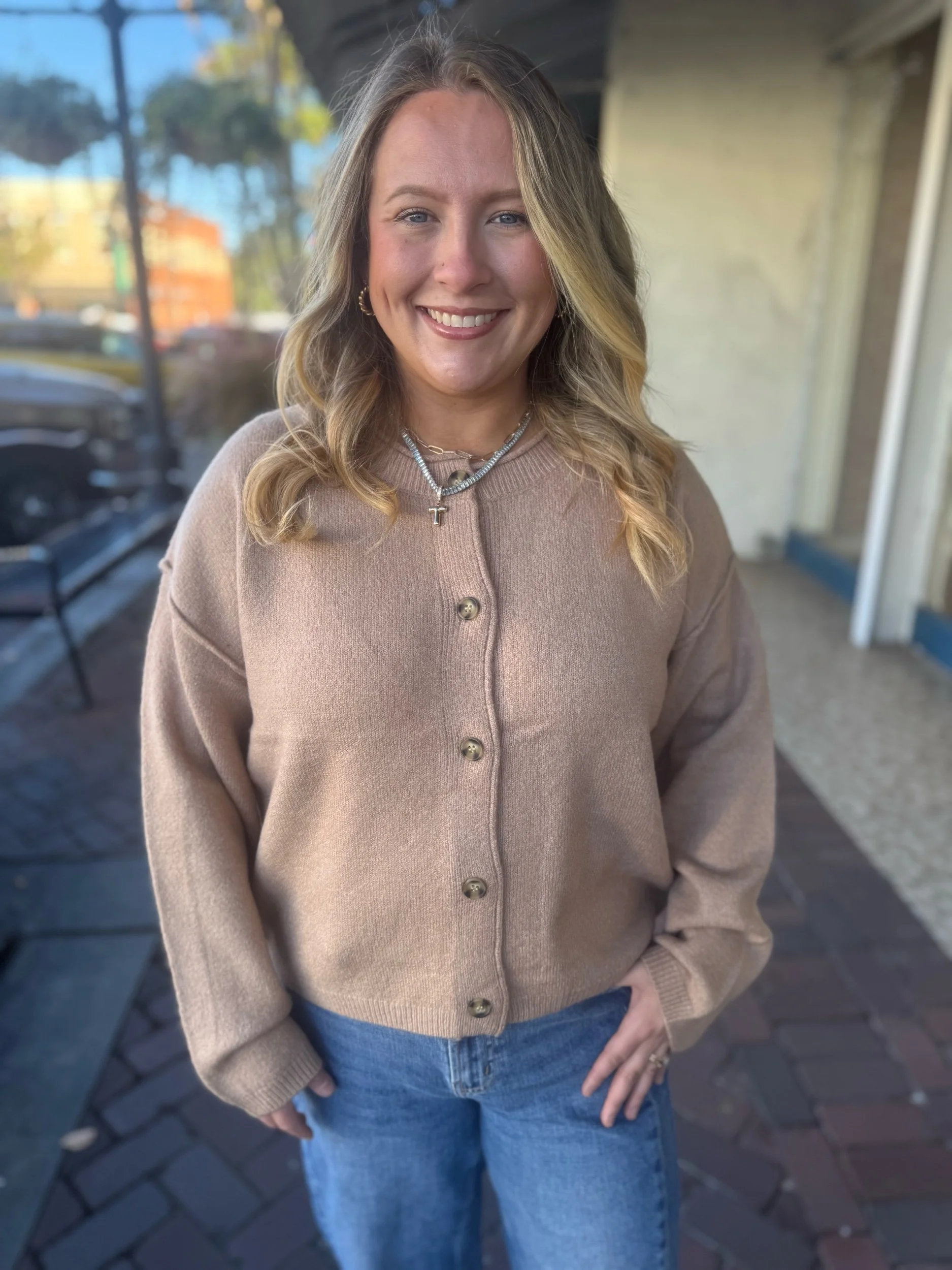 This classic cardigan sweater features functional front buttons with a relaxed fit making this perfect for layering.